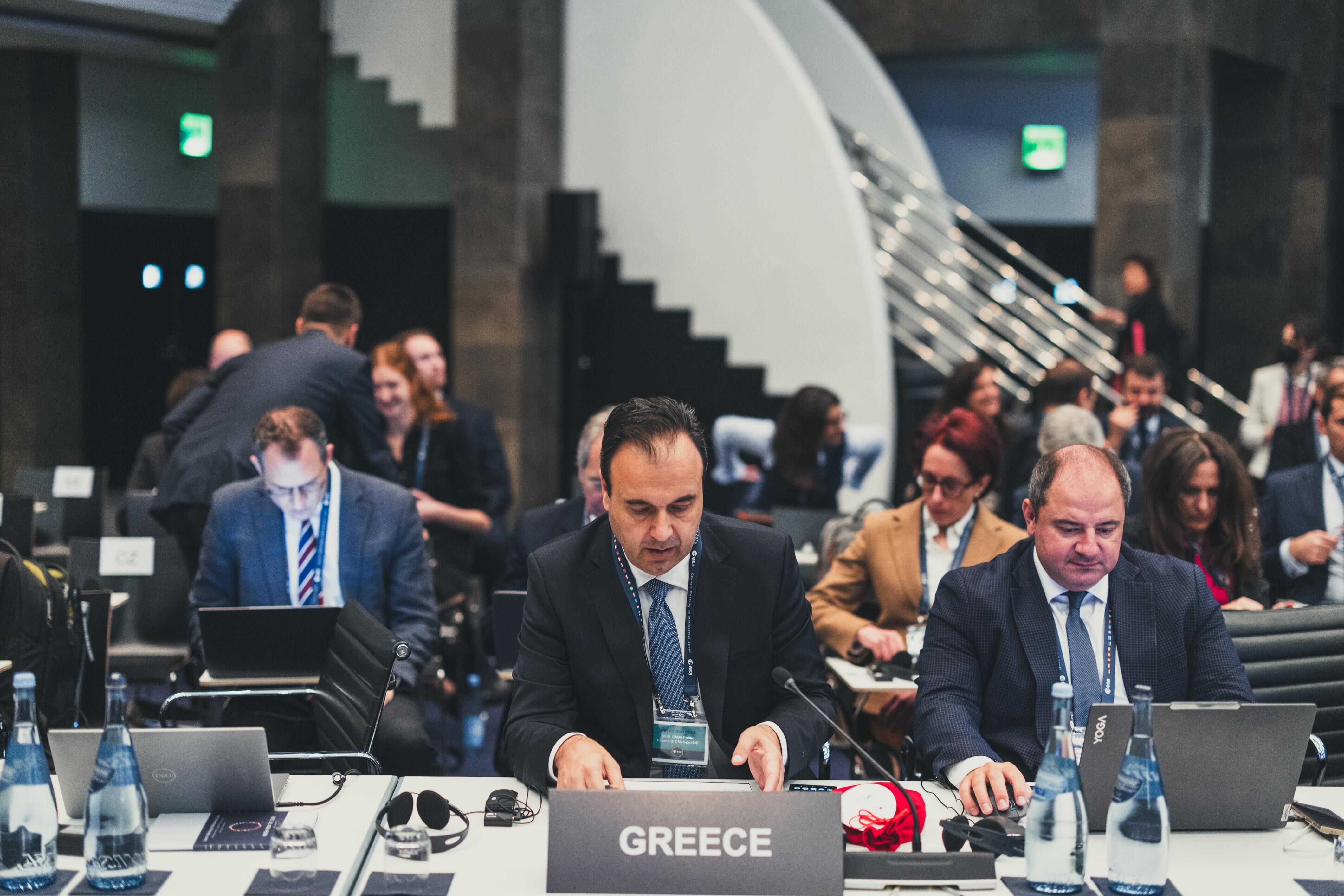 The Opening Session at the 2025 Ministerial Council in Bremen, Germany on 26 November 2025. Dorothee Bär, Federal Minister of Research, Technology and Space, Germany, opened the meeting. Adolfo Urso, Minister of Business and Made in Italy was elected Chair of CM25, the ESA Council at Ministerial level.