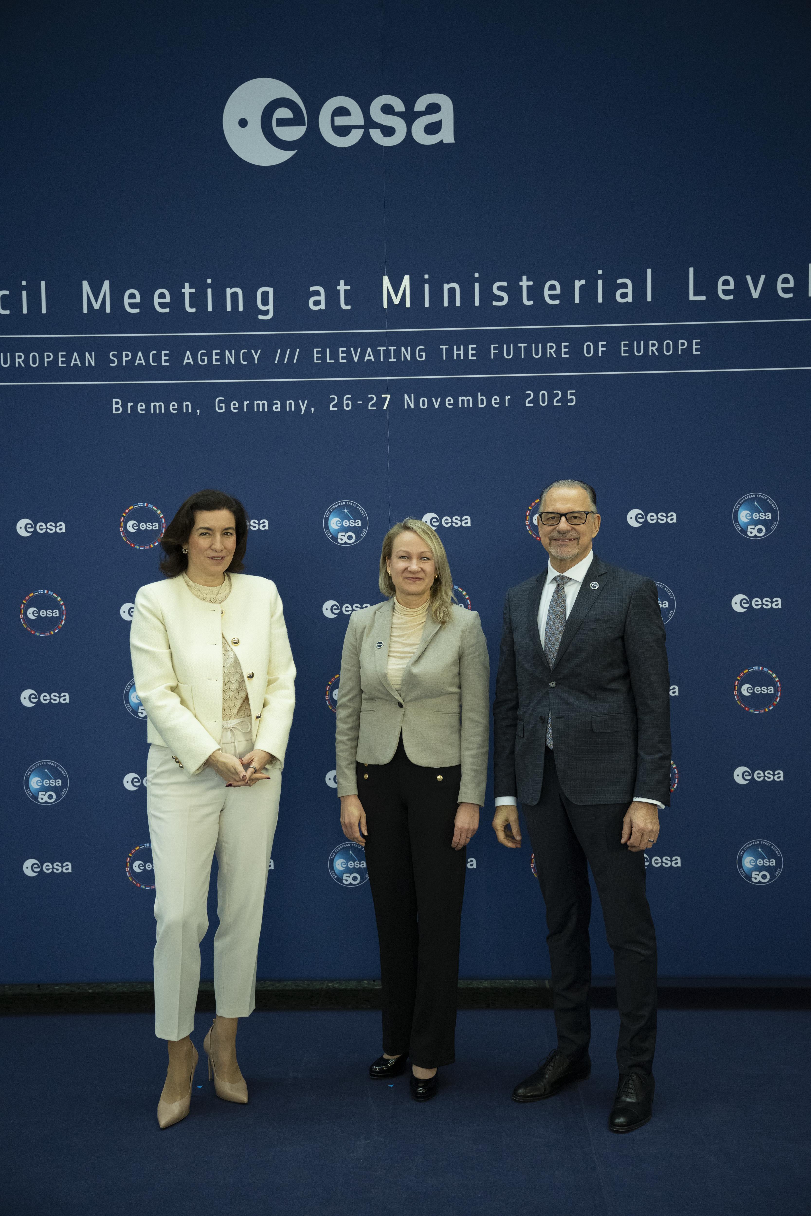 Arrival and greeting of Ministers and photos with ESA astronauts at the start of day 2 of the 2025 Ministerial Council in Bremen, Germany on 26 November 2025.