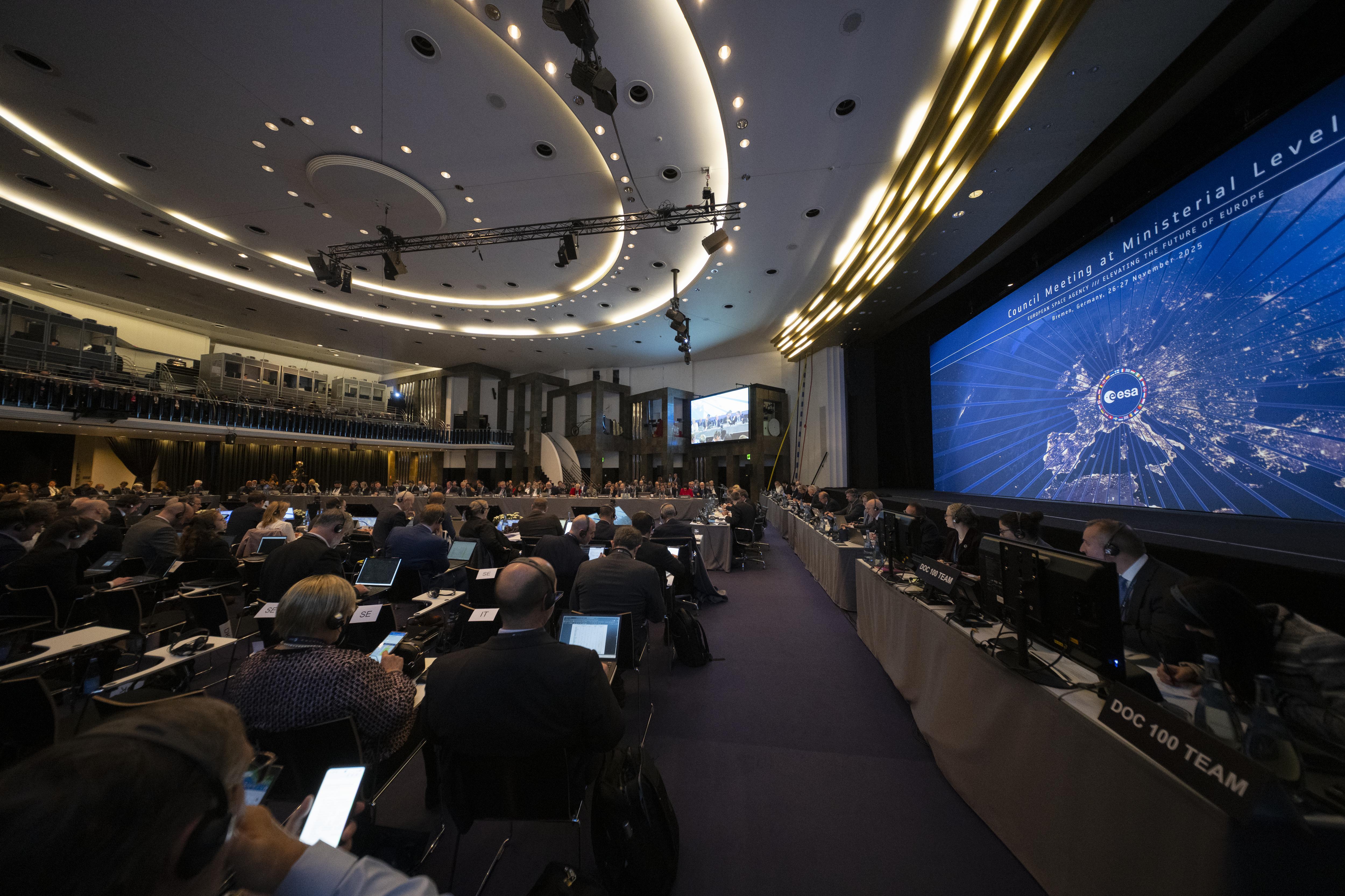 Wide angle shots of the conference room at the 2025 Ministerial Council in Bremen, Germany on 27 November 2025.