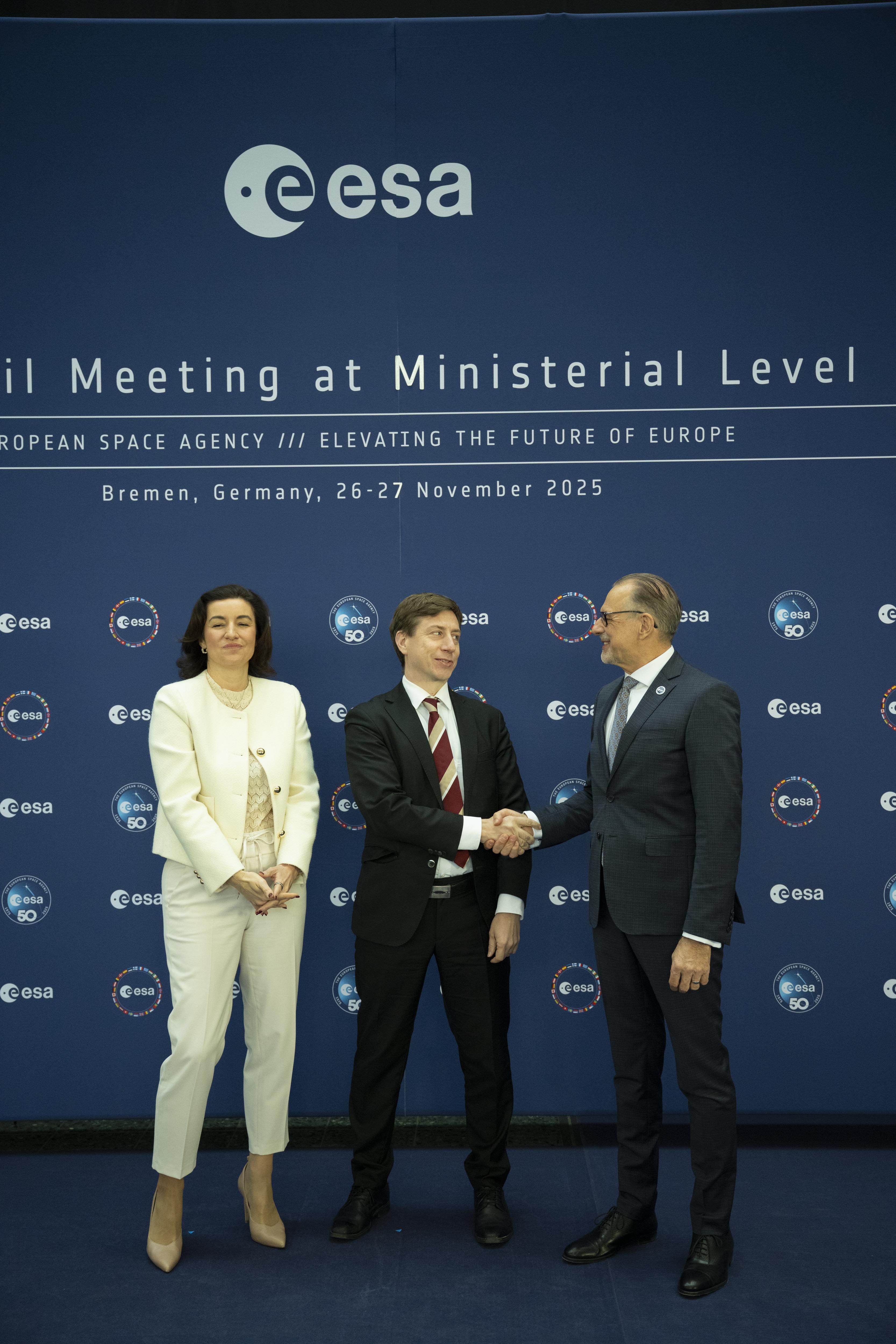 Arrival and greeting of Ministers and photos with ESA astronauts at the start of day 2 of the 2025 Ministerial Council in Bremen, Germany on 26 November 2025.