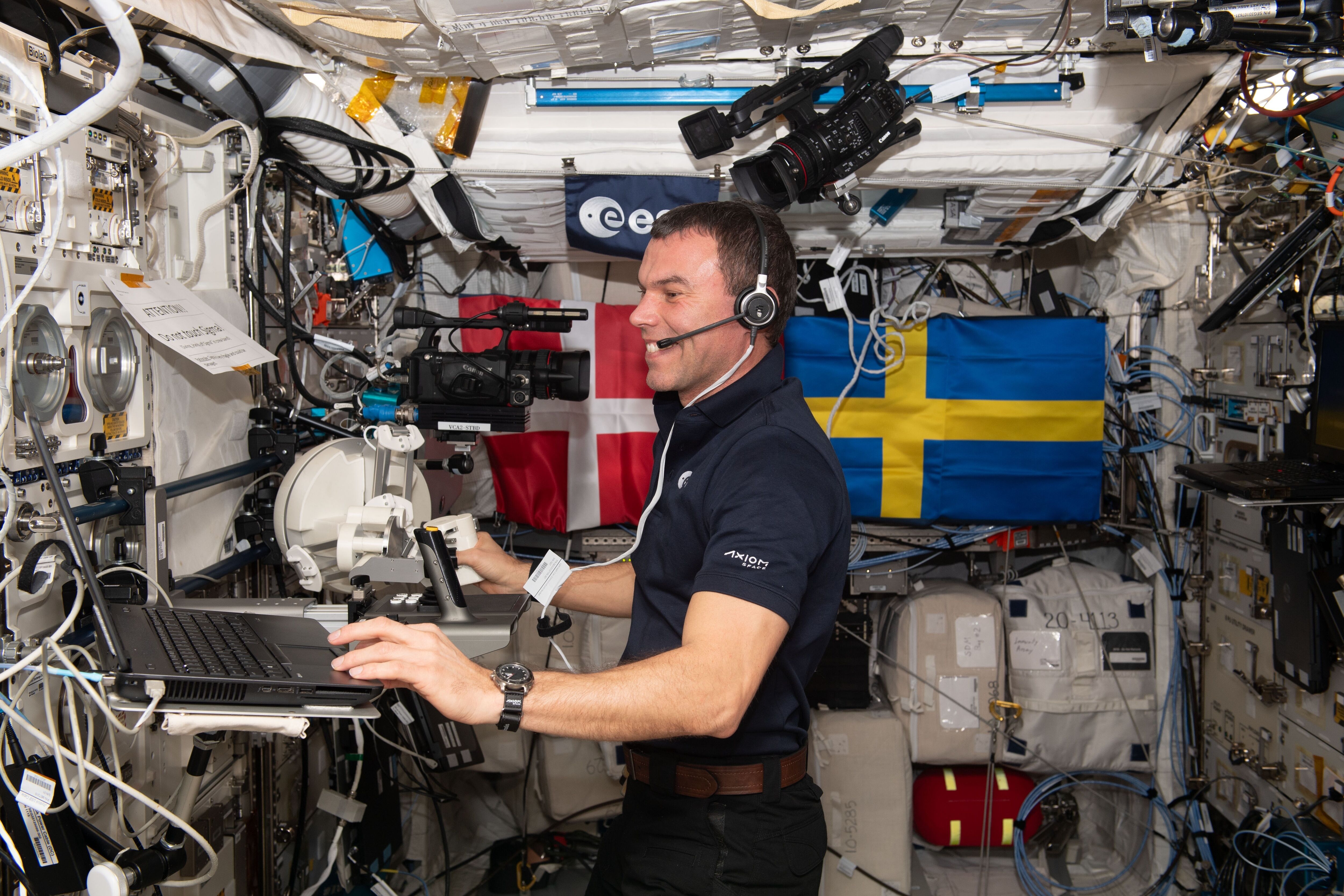 Marcus Wandt in Cupola with Swedish flag